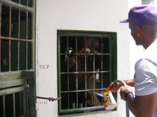 On May 7th EMCuraçao started a pilot project for a hygienic, healthier and sustainable park for both the inhabitants and the visitors. We started with the cages the lion, King.